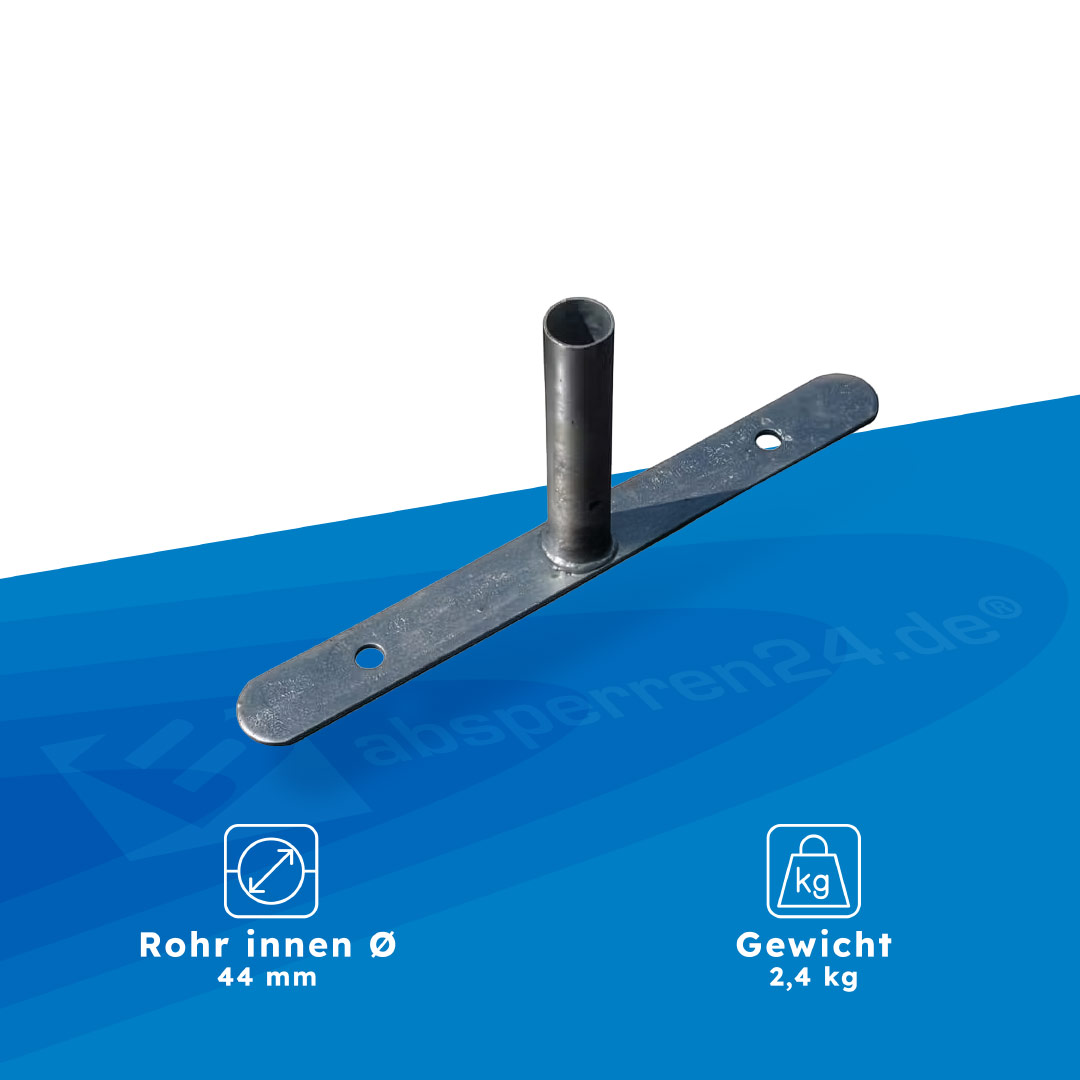 Flachfuß für Absperrgitter universal – kompakt, stabil und zuverlässig.