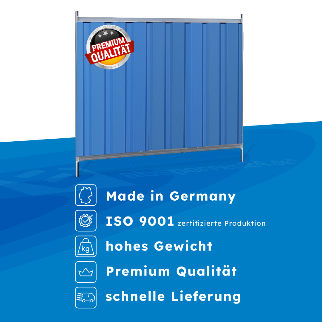 Verzinkter Rahmen mit profilierten Blechen, verfügbar in verschiedenen Farben: blau und weiß